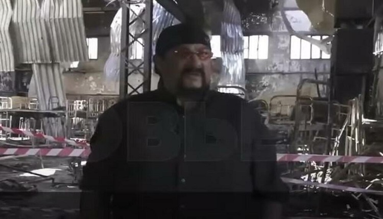 Во вторникот Стивен Сигал го посети уништениот затвор во Украина под руска окупација, каде ги повтори зборовите на Кремљ во улога на официјален портпарол.