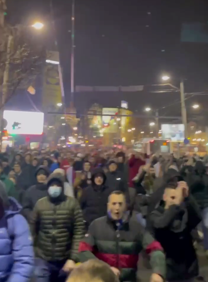 Пред околу половина час голема група на луѓе се собра и во овој момент маршира по улиците на главниот град на Србија во знак на поддршка кон оние луѓе кои живеат на северот на Косово.