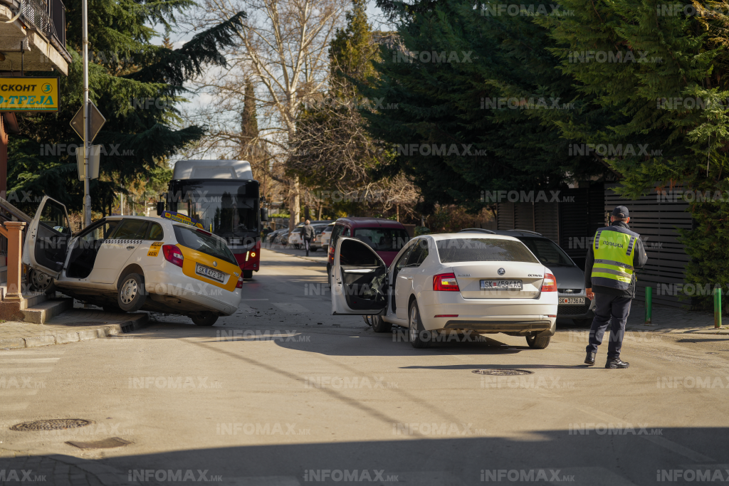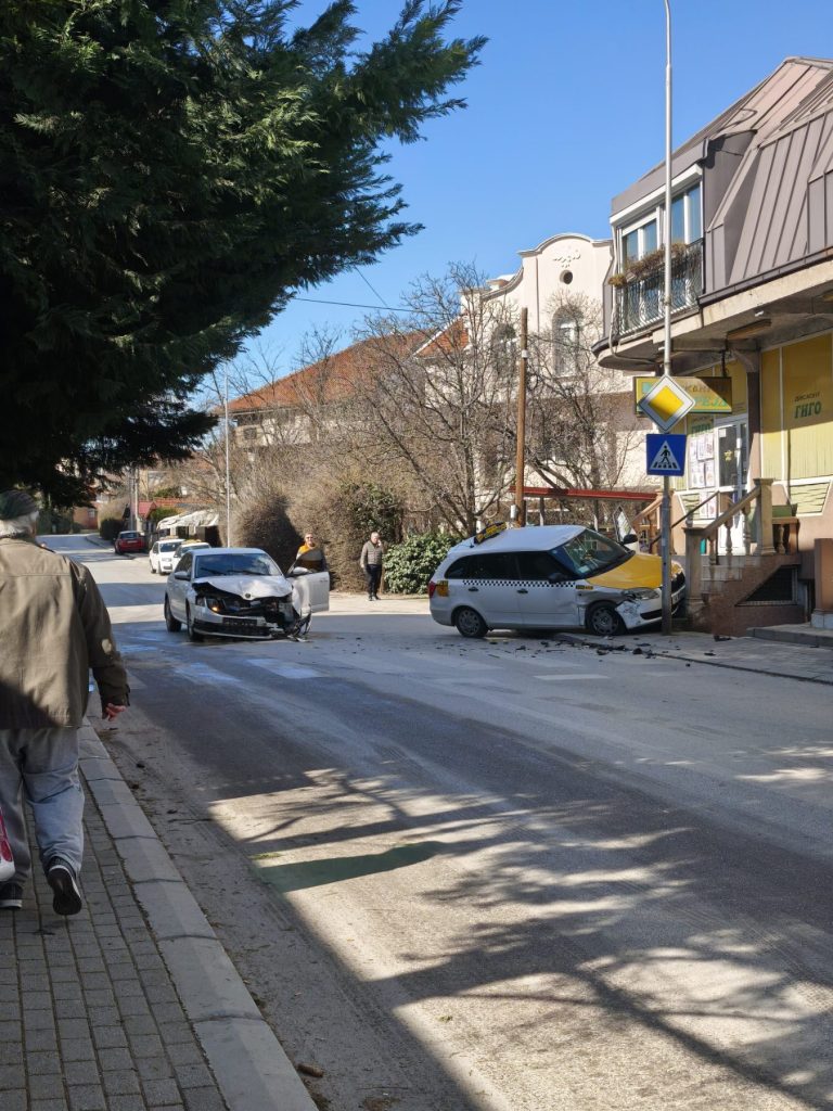 Два автомобили се судрија на улицата „Востаничка“ во Црниче, кај маркетот „Гиго“. На фотографиите во продолжение можете да забележите дека двата автомобили имаат голема материјална штета.