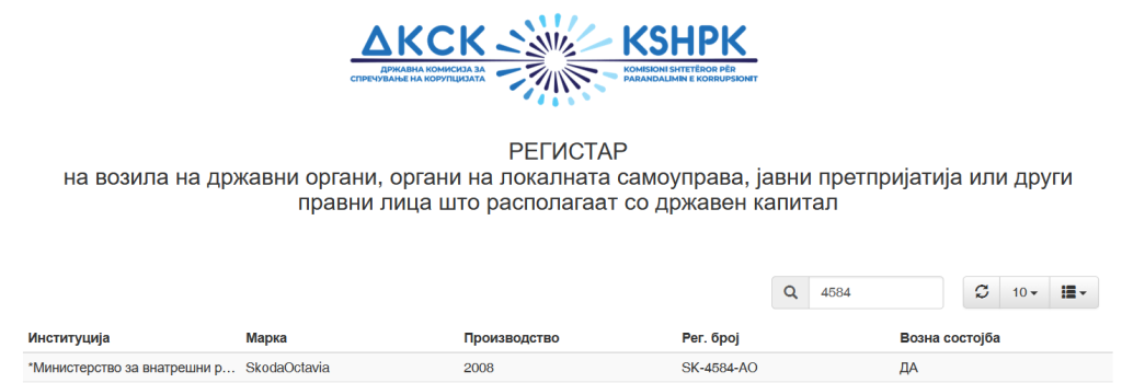 Белата Шкода Октавија е службено возило на МВР, согласно регистарот на службени возила.