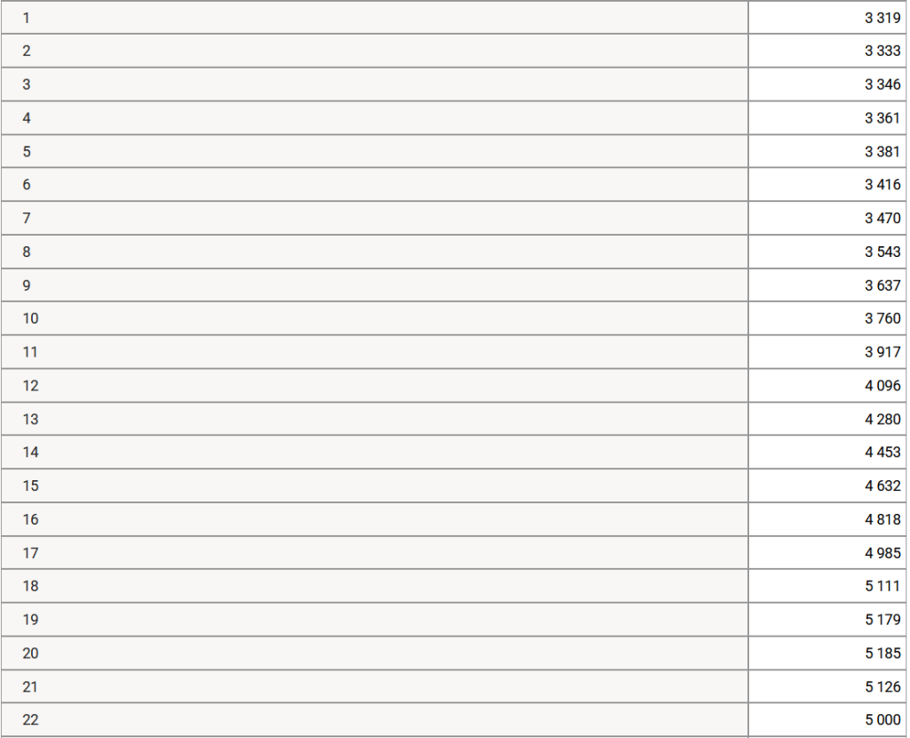 - околу 894 000–912 000 RUB за второ и повеќе (речиси 10.000 евра).
