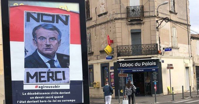 Макрон како Адолф Хитлер-Скандалозни плакати во Авињон