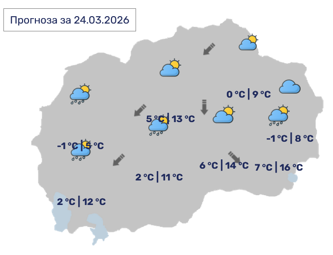 Времето утре сончево со мала облачност, во…