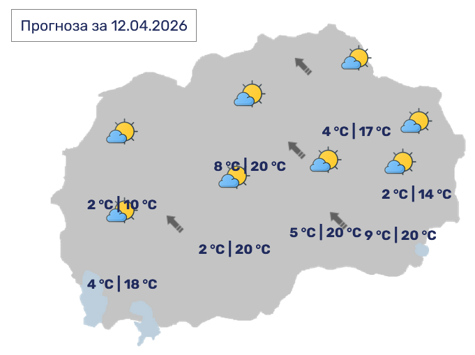 Времето утре сончево со мала облачност, во…