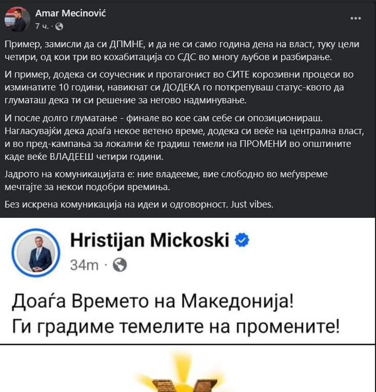 *Објава на Фејсбук на пратеникот од Левица, Амар Мециновиќ: