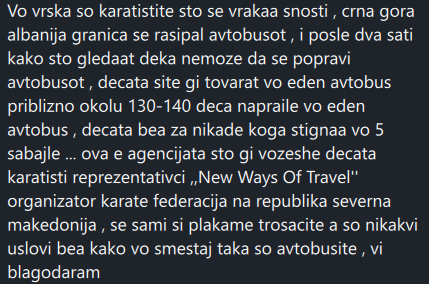 Си платиле за да напикаат 130-140 деца во еден автобус и да ги носат на карате натпревар со соседна Албанија! Родители на децата за Инфомакс вечат дека организацијата е на Карате федерација на Македонија, а трошоците си ги плаќале децата сами, односно нивните родители, за на крај да им се случи тоа што се случи.