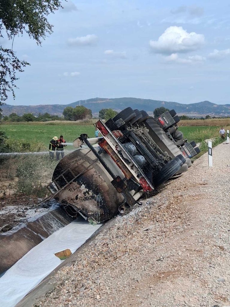 Претпладнево цистерна која превезувала нафта излетала од регионалниит пат Гевгелија – Богданци и се превртеле после што дошло до истекување на нафта и палење на истата.