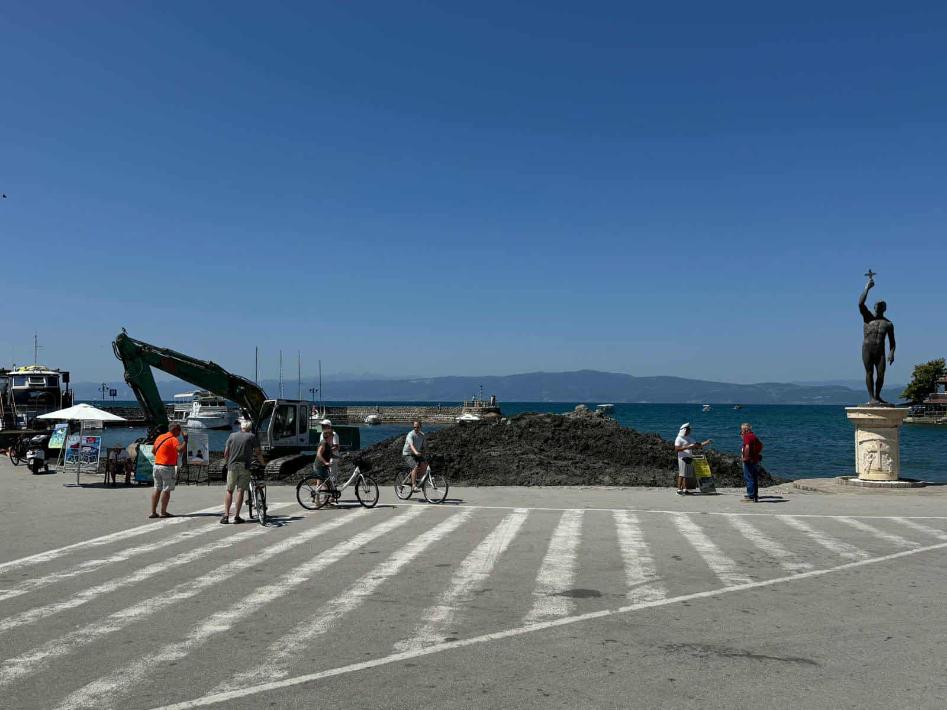 На почетокот на летната сезона, непријатни слики од Охрид. Во обидите за чистење на Охридското езеро, изваден муљ и отпад од водите е оставен на самото пристаниште во градот, во денови кога има голем број на туристи, објави Локално.