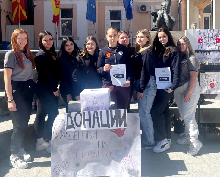 – Ние сме длабоко трогнати од она што се случи, тоа беа наши врсници, млади луѓе со соништа и визии за иднината кои неповратно се изгубија за миг. По неколкуте денови од трагедијата во кои излегувавме во вeчерните часови на мирни собири и палевме свеќи, одлучивме да продолжиме со оваа акција за донации насловена „Денови на солидарност“. Ќе се менуваме по редоследот на училишните смени и овде ќе бидеме вечер до 19 часот, но и утре и задутре, рече Невена Стефановска, ученичка во втора година, медицинска струка , СОУ „Ѓорче Петров“, Крива Паланка.