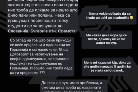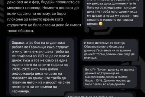 Рокот за поднесување на даночни пријави е 31 март (утре). Во меѓувреме, студентите реагираат со недоумица и револт, посочувајќи дека немаат јасни насоки и дека добиваат различни информации од надлежните институции, што дополнително ја усложнува ситуацијата. Претходно УЈП соопшти дека ќе ги даночи странските исплати од 2020 година.