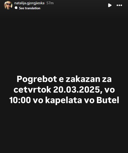 Неговата сопруга Наталија објави дека погребот ќе биде извршен утре во 10 часот.