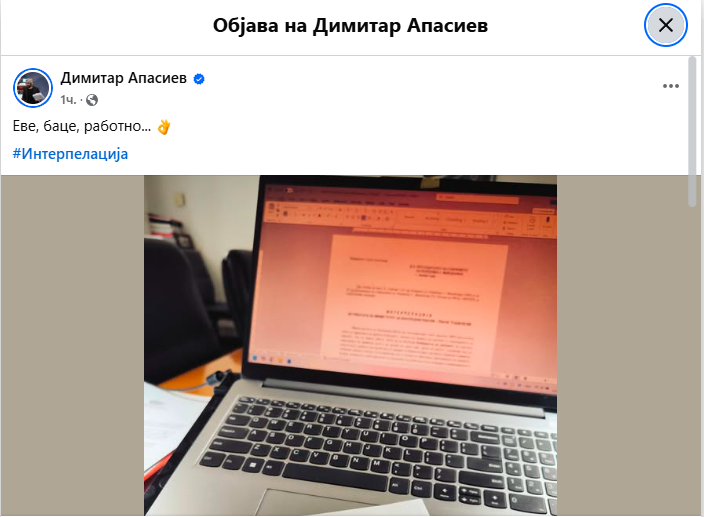 Претседателот на Левица, Димитар Апасиев, преку кратка, но значајна објава на својот фејсбук-профил, најави дека пратениците од Левица ќе поднесат интерпелација за министерот за внатрешни работи, Панче Тошковски. Повод за овој чекор е трагедијата што се случи во дискотеката „Пулс“ во Кочани, каде животите до сега ги загубија 61 млад човек.