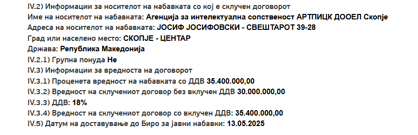 Владата дава 35 милиони денари за работа што може да ја заврши секој службеник со завршен правен факултет, односно да состави авторски договор. Оваа практика на институциите да трошат милиони за авторски договори никако да престане. Последен пример е Владата, меѓутоа истото го има во сите општини, државни институции, претпријатија и министерства.
