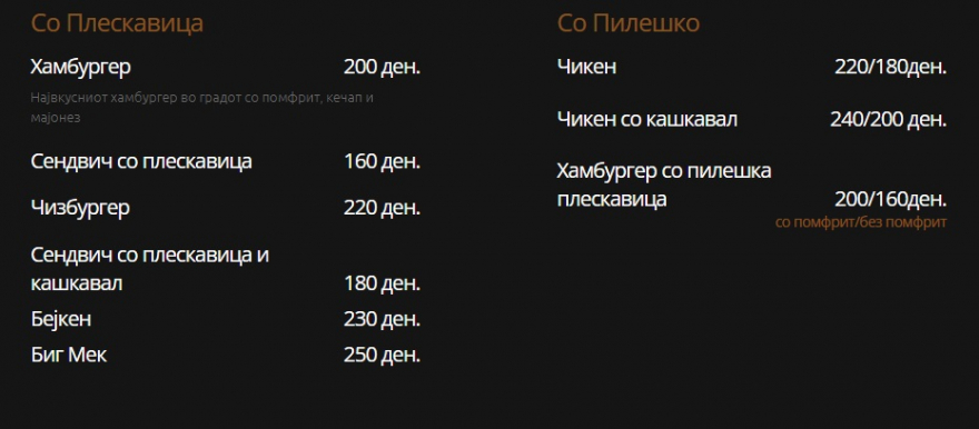 Веројатно најпопуларната сендвичара во Македонија има нови цени. Хамбургерот чини 200 денари, чизбургерот 220 денари!