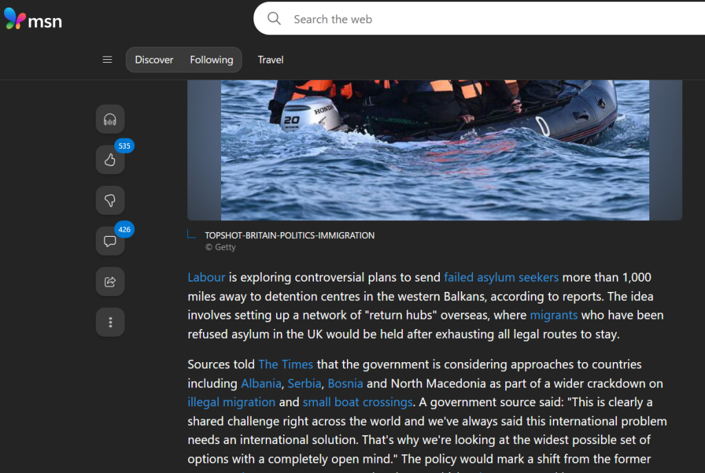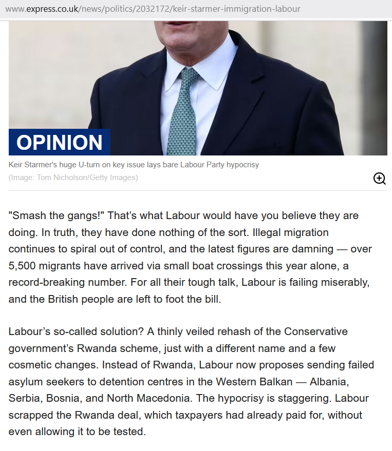 „Таканареченото решение на лабуристите? Прикриена преработка на шемата на конзервативната влада со Руанда, само со различно име и неколку козметички промени. Наместо Руанда, лабуристите сега предлагаат испраќање на одбиените баратели на азил во центри во Западен Балкан – Албанија, Србија, Босна и Северна Македонија. Лицемерието е зачудувачко. Лабуристите го отфрлија договорот со Руанда, за кој даночните обврзници веќе платија, без дури ни да дозволат да биде тестиран.“ пишува Експрес.
