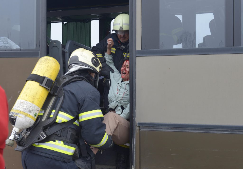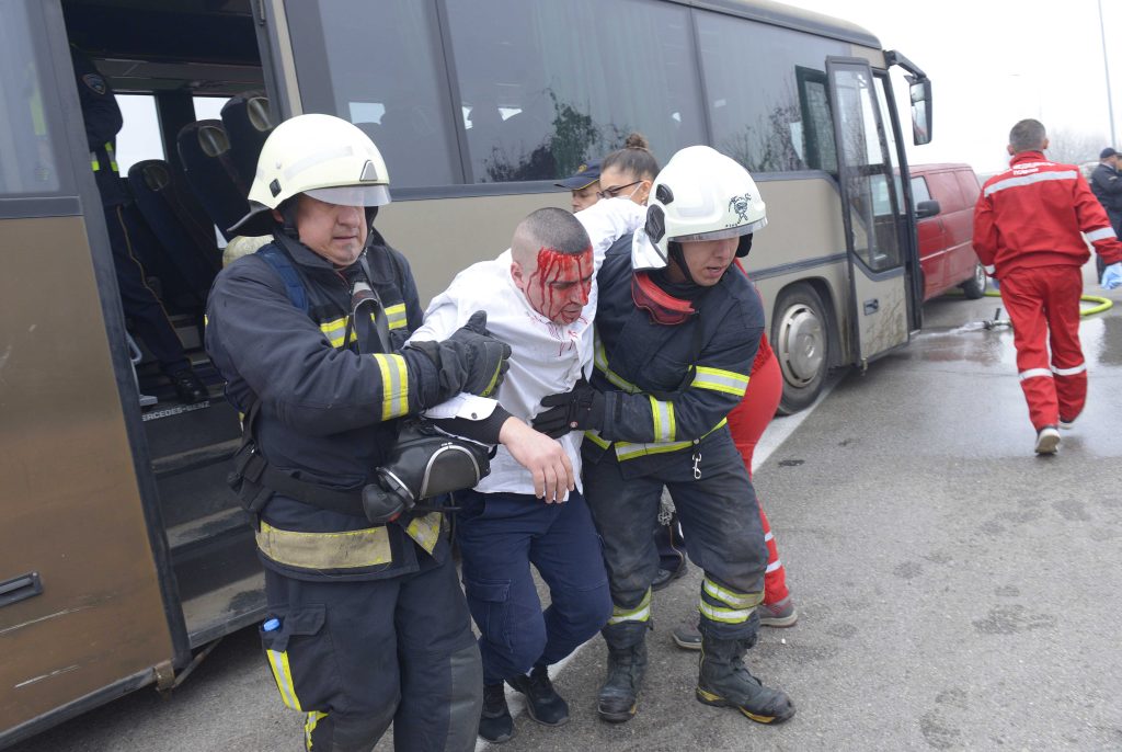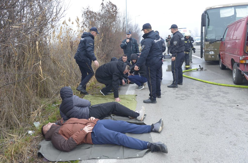 Во текот на вежбата, припадниците на Противпожарната бригада го гаснеа пожарот предизвикан од судирот и со сечење на одредени делови на возилата извлекуваа повредени лица. На лице место од страна на Итната медицинска помош и Црвениот крст се укажуваше помош на повредените лица на лице место – тријажа и транспортирање со хеликоптер и амбулантни возила до болничките установи. Припадниците на МВР го обезбедуваа местото на настанот, го пренасочуваа сообраќајот, преземаа мерки за обезбедување на сите лица во сообраќајната несреќа, утврдуваа идентитет, како и фаќање на криумчарите на мигранти, а најтешките пациенти беа пренесувани со хеликоптер за медицински транспорт на МВР. Медицинските установи со своите капацитети и расположливи средства и човечки ресурси укажуваа медицинска помош на повредените.