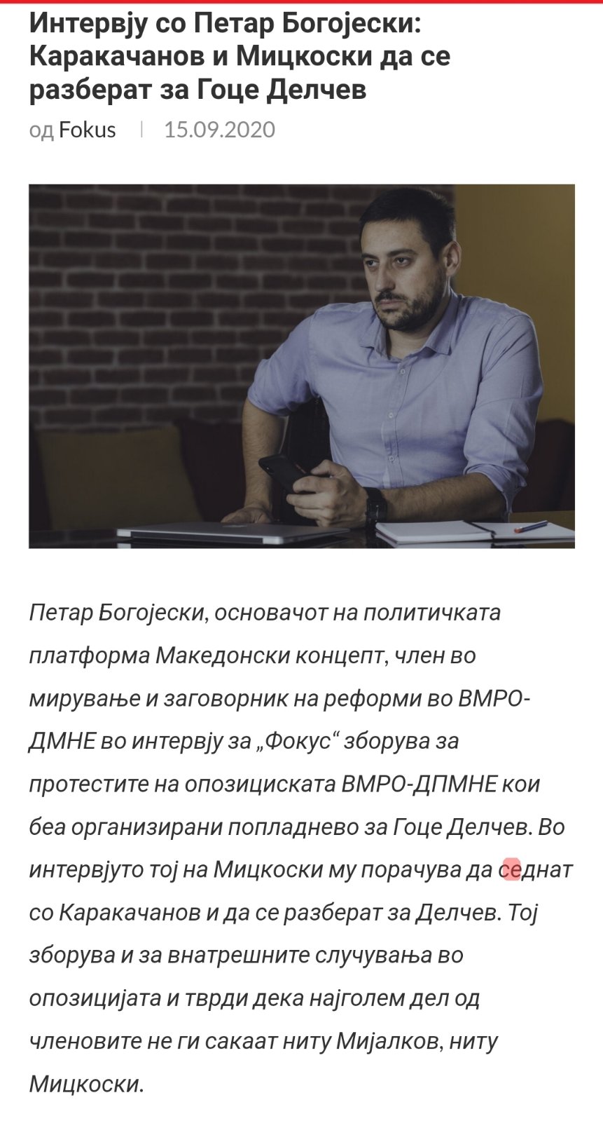 Но тоа не е се во интервју за Фокус тој директно го обвинуваше Мицкоски дека работи за руските интереси во Република Македонија.