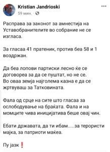 Фала од срце на сите што гласаа за ослободување на браќата.