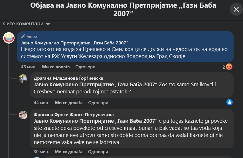 Граѓаните остро реагираат и бараат итно решавање на проблемот со водоснабдување, а градоначалникот Стефковски се закани со протести за неработењето на претпријатијата кои се во негова надлежност.