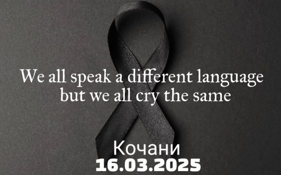 Учениците од ОСМУ „Никола Штејн“ со видео порачаа: „Говориме на различен јазик, но плачеме исто“. Во снимката, тие држат црни балони, а на дланките имаат испишано натписи со поддршка за сите засегнати од несреќата.