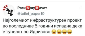 Граѓаните удрија мајтап на социјалните мрежи: Тунелот што го ископале затворениците од Идризово е најголемата инфраструктурна инвестиција годинава!