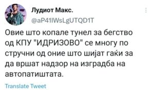 Твитерџиите, секако инспирирани од актуелните политички настани коментираат дека затворениците што копале тунел, се постручни од оние што шијат гаќи за надзор на изградбата на автопатиштата“.