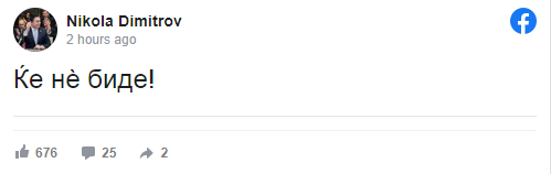 Поранешниот министер за надворешни работи Никола Димитров на Фејсбук накратко напиша:
