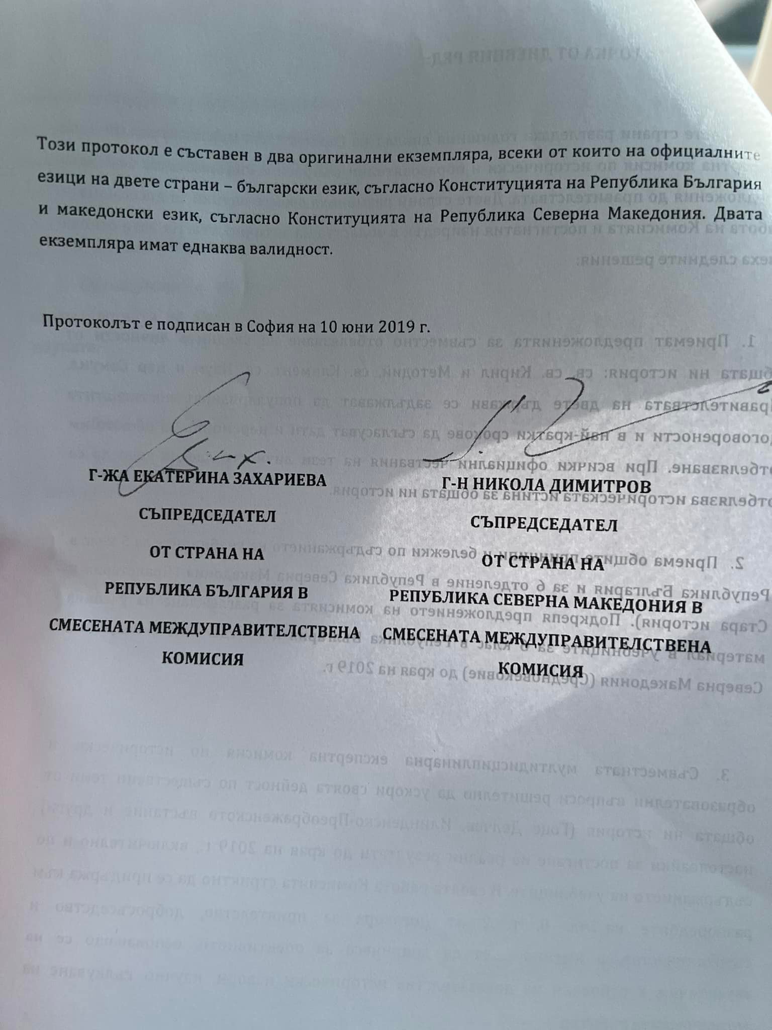 Второ, потпишувајќи го единствениот Протокол, мојот претходник ја обврзал и Комисијата, но и земјата, пред целиот свет, дека имаат краток рок до крајот на 2019 година, да најдат решение за Гоце Делчев и востанието, сега веќе и дефинирано согласно бугарската позиција како “Илинден Преображенско”