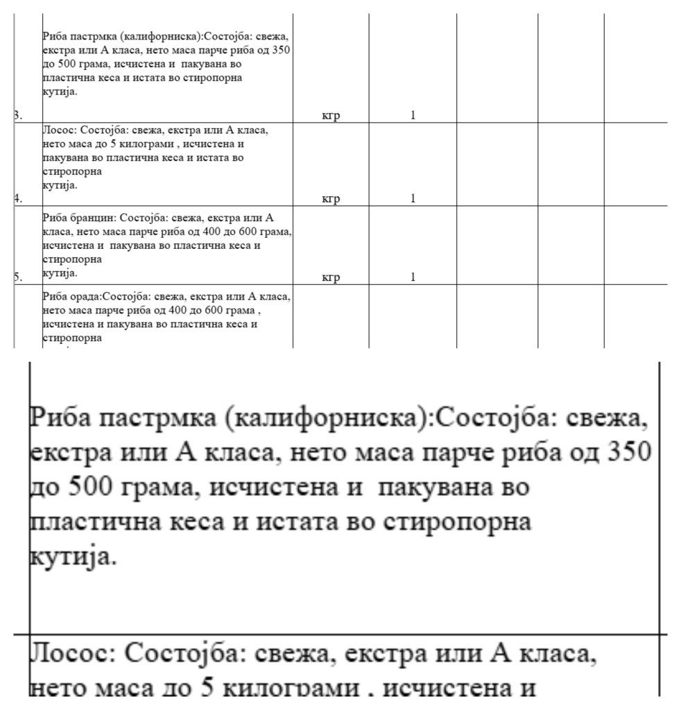 Во листата на артикли што се бараат на тој тендер „нема што нема“. Се бара крап А класа во свежа состојба. Нето масата на парче риба треба да е од половина до 2,5 килограми, а рибата да биде исчистена и пакувана во пластична кеса ставена во стиропорна кутија. Се бара и свежа пастрмка од А класа, калифорниска свежа пастрмка од А класа, лосос од А класа, риба бранцин и риба орада.