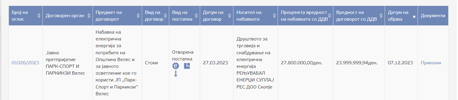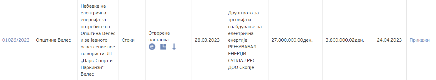 Општина Велес за набавка на електрична енергија од фирмата на Анѓушев исплатила 27.8 милиони денари.