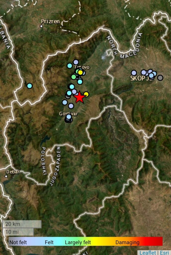 Според првичните информации земјотресот се случил во 9 часот и 24 минути, а епицентарот бил на 13 километри од Тетово.