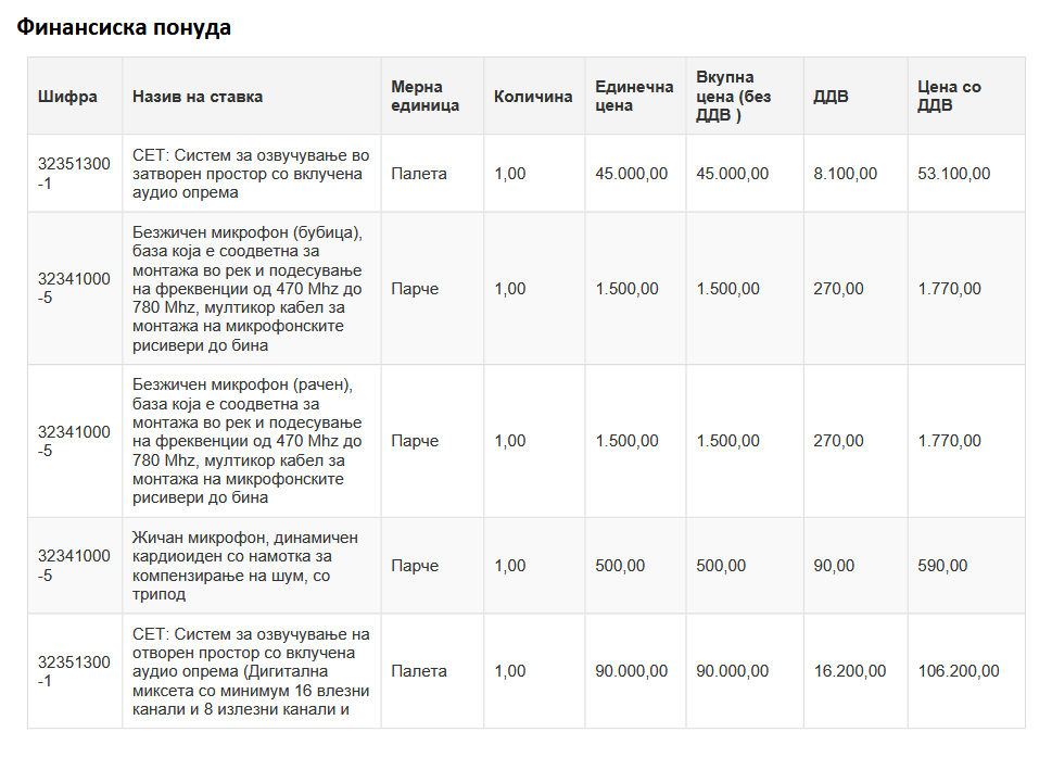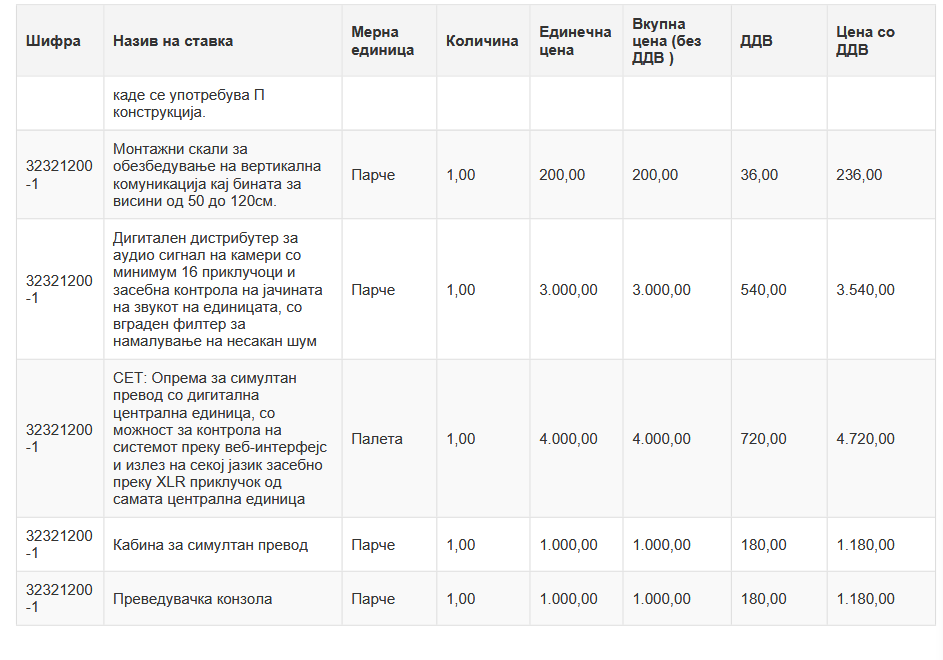 Инаку, во претходните години Владите изнајмувале слична опрема по драстично помала цена. На пример во 2018 година договорот изнесува 3,6 милиони денари, во 2023 година опремата за симултан превод чинела 2,5 милиони денари.