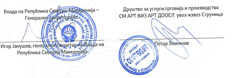 Договорот е склучен и објавен денес, а е потпишан од страна на генералниот секретар на Владата, Игор Јанушев.