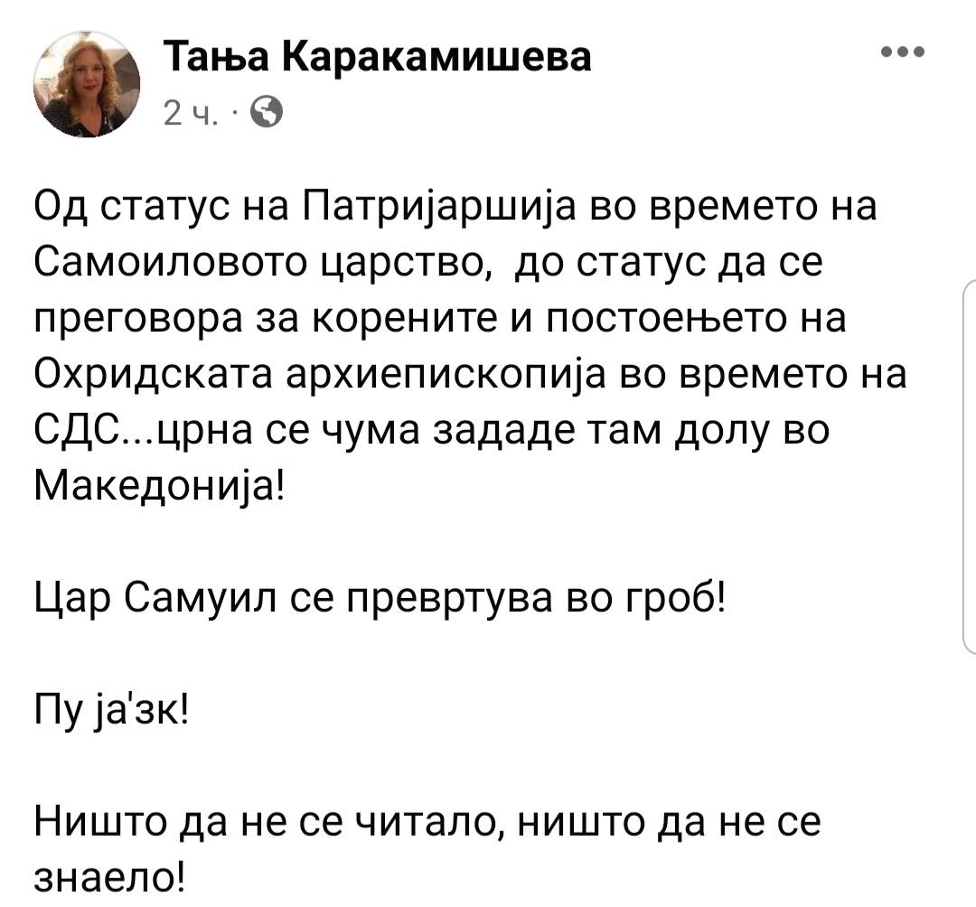 Од статус на Патријаршија во времето на Самоиловото царство, до статус да се преговора за корените и постоењето на Охридската архиепископија во времето на СДС… црна се чума зададе там долу во Македонија!