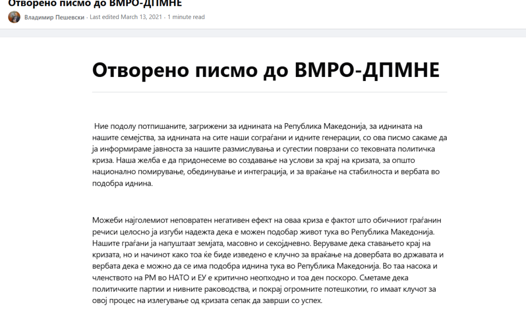 Отворено писмо до ВМРО-ДПМНЕ