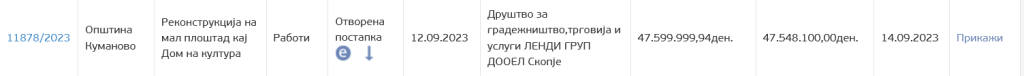 На веб-страницата за јавни набавки стои дека првичниот договор е склучен на 12.09.2023.