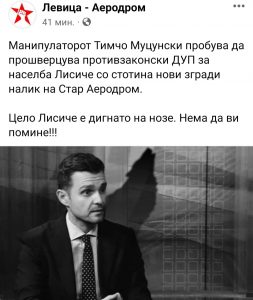 Манипулаторот Тимчо Муцунски пробува да прошверцува противзаконски ДУП за населба Лисиче со стотина нови згради налик на Стар Аеродром.