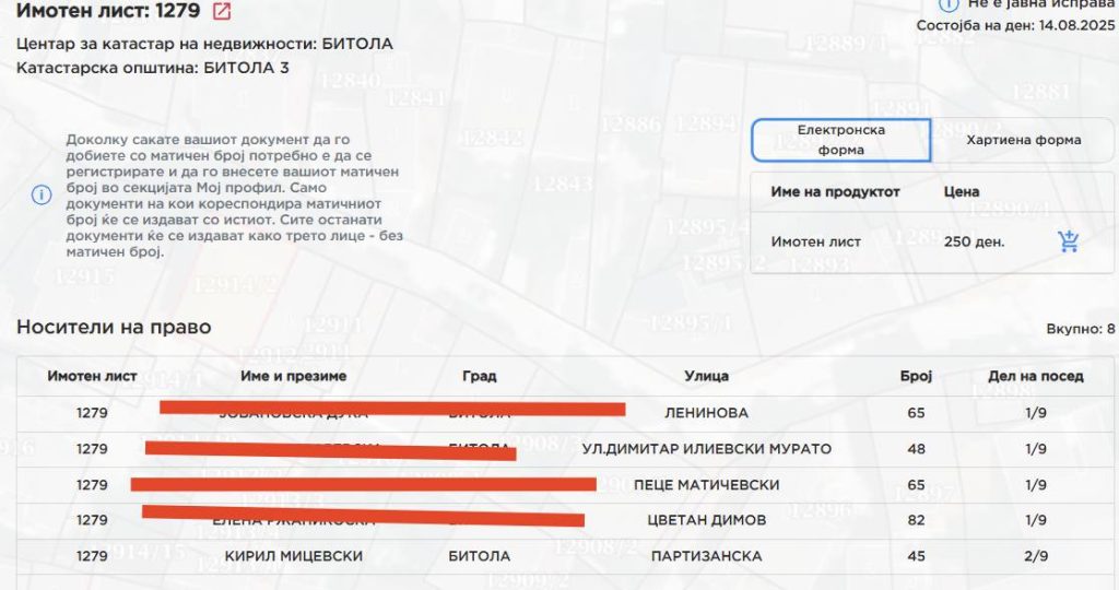 – Како што Левица ги откриваше контроверзните дејствија на ова лице кое под сомнителни околности се поврзуваат случаеви за вршење на рекет и злоупотреба на службена должност спротивно од законот за вршење на штета на локалната самоуправа за нелегални градби и други дејствија, откриваме информации колку тежи овај корумпиран инспектор во катастарот за недвижности.