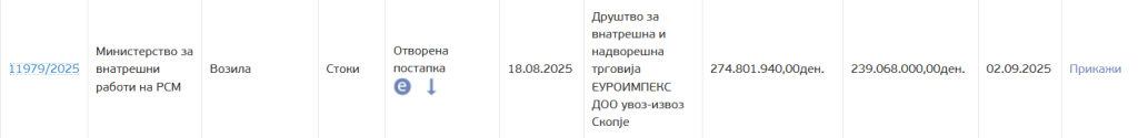 Министерството за внатрешни работи набавува нови 120 возила за речиси 4 милиони евра, односно 239.068.000 денари.