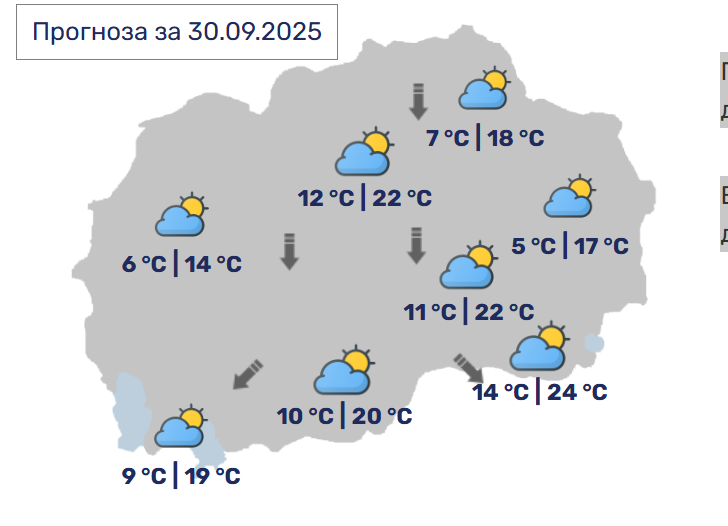 Променливо облачно со сончеви периоди. Ќе дува слаб до умерен ветер од северен правец.