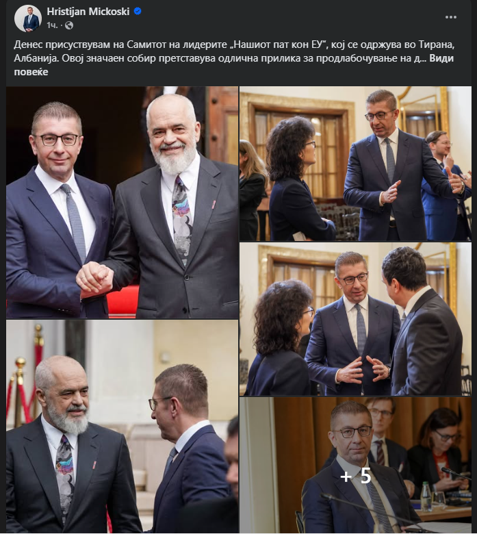 „Овој значаен собир претставува одлична прилика за продлабочување на дијалогот и зајакнување на заедничките напори на земјите од Западен Балкан во процесот на приближување кон Европската Унија“, вели Мицкоски.