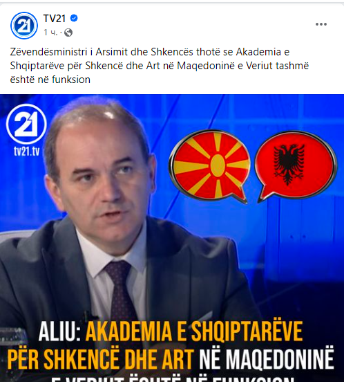 Албанската академија на науки и уметности во Македонија веќе функционира, вели заменик-министерот за образование, објави ТВ 21.