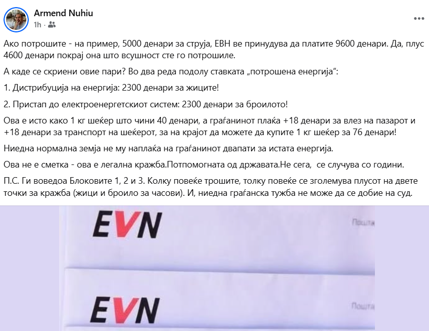 Нухиу за сметките за струја: Ова не е сметка – ова е легална кражба, потпомогната од државата !