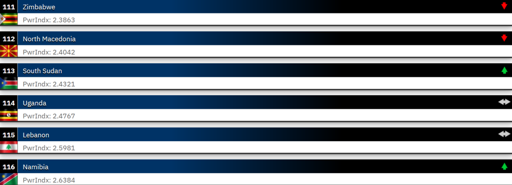Војската на Македонија се најде на 112. место на листата, од 145 земји.