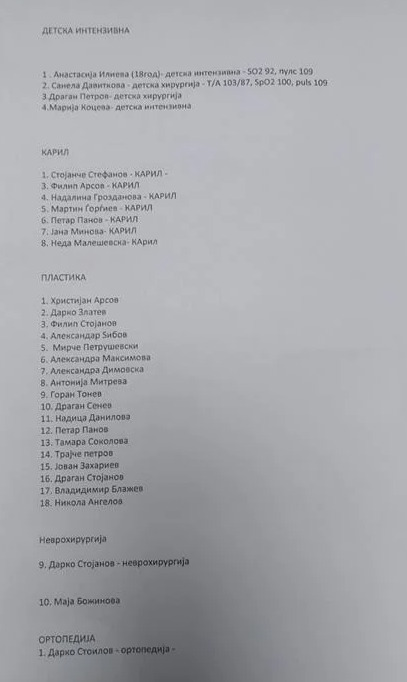 ОБЈАВЕНИ СПИСОЦИТЕ НА ПРЕНЕСЕНИТЕ ВО СКОПСКИТЕ БОЛНИЦИ