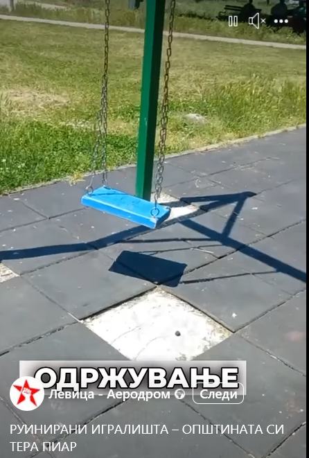 На Фејсбук тие реагираа за „срамната состојба со детските игралишта низ нашата општина. Повеќето игралишта се запуштени, со скршени реквизити, оштетени подлоги и без никакви безбедносни стандарди – директна закана за здравјето и безбедноста на најмладите жители.