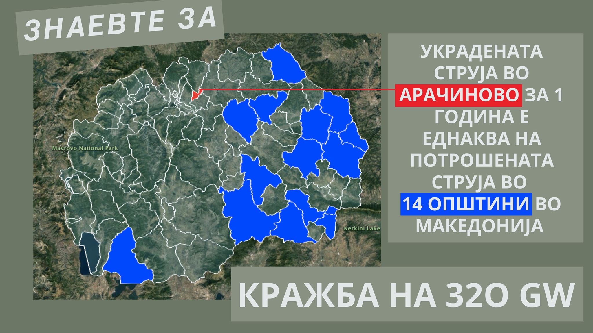 ,,Општина Арачиново со 12 676 жители за 1 година УКРАЛЕ струја која ја трошат верувале или не, 220.000 жители во 14 општини во Македонија” , велат на Фејсбук од Трета Опција.