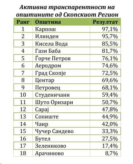 Општина Кисела Водa во првите три скопски најтранспарентни општини