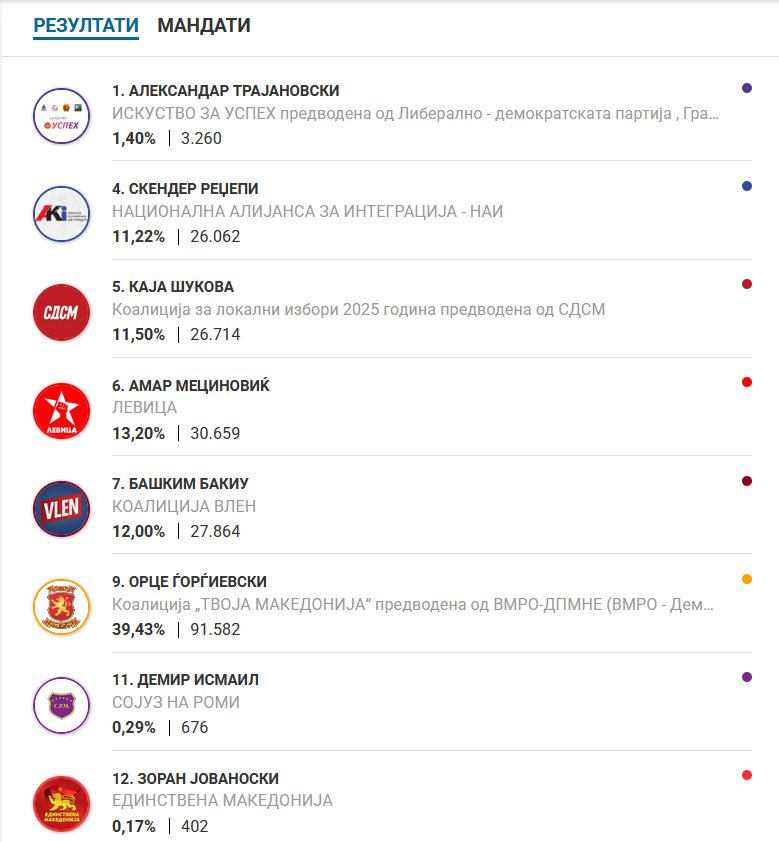 ОФИЦИЈАЛНО: Mециновиќ и Ѓорѓиевски во борба за Скопје – Втор круг ќе има во 33 општини!