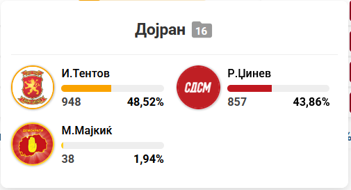 Во Дојран во втор круг одат кандидатите на ВМРО-ДПМНЕ и СДСМ.